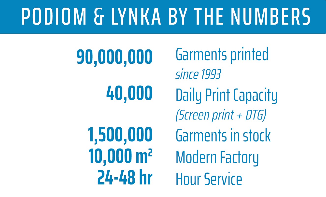 PODIOM is a freshly created division of LYNKA that focuses exclusively on the fastest growing part of the imprinted apparel industry: Print-on- Demand.